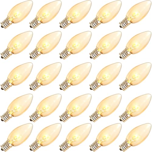 Abeja 25 Pack C9 Incandescent Replacement Bulb C9 Christmas Light Bulb for Holiday Party Christmas Decorative String Light E17 Intermediate Base 7w Clear Bulb