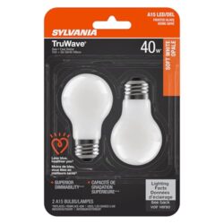 SYLVANIA LED TruWave Natural Series Ceiling Fan / Fixture Light Bulb, 40W A15 Soft White Medium Base, Dimmable, Frosted – 2 Pack