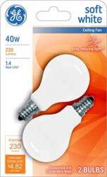 GE A15 Ceiling Fan Decorative Light Bulb, Soft White Finish, 40-Watt, Candelabra Base, 2-Pack