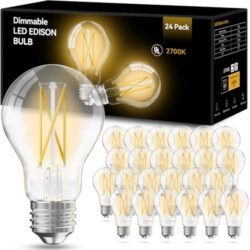 VOLIVO 24 Pack Vintage LED Bulbs, A19 Dimmable Light, 2700K Warm White, 60W Equivalent, CRI 80+, Clear Glass Filament, 7W, E26 Standard Base, Classic Edison Antique Style for Home