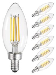 TORCHSTAR Dimmable E12 LED Candelabra Bulb 60W Equivalent, Vintage Chandelier Light Bulbs, UL Listed, LED Filament Candle Bulb C11, Clear Glass, Ceiling Fan Light Bulbs, 2700K Soft White, Pack of 6