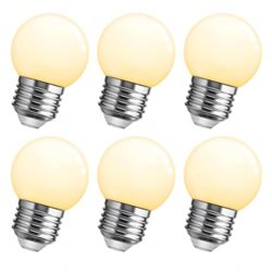 Flaspar Small G14 LED Globe Light Bulb, 1W G45 LED Vanity Bulb 15W Equivalent, Warm White 3000K E26 Base, LED Colored Light Bulbs for Bathroom Mirror Halloween Christmas Wedding Party Decor, 6 Pack
