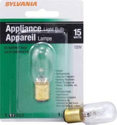 SYLVANIA Incandescent Appliance Light Bulb, 15W, T7, 110 Lumens, 120 Volts, Double Contact, Bayonet Base, Clear Finish (18200), Warm White, 1 Count (Pack of 1) -