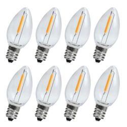 KLY LED Night Light Bulbs, C7 Shatterproof Replacement Led Bulb for String Light, E12 Base Salt Lamp Bulbs, 0.6W Equivalent to 7W, Warm White 2200K, 50LM, 8 Pack :
