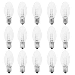 Night Light Bulb 7 Watt E12 Base C7 Replacement Small Light Bulbs for Night Light,Salt Lamp,Table Lamp,Chandeliers,Christmas String Lights,Dimmable,Warm White-15 Packs -