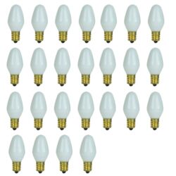Sunlite 01285 7C7 Incandescent Bulb, 7 Watt, Candelabra E12 Base, C7 Small Night Light, Colored Bulb, White, 25 Count
