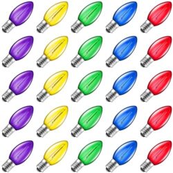 C7 Multicolor LED Christmas Light Bulb, Waterproof Replacement Bulbs for Outdoor Indoor Christmas String Lights, E12 Candelabra Base, Dimmable Commercial Grade Holiday Bulbs for Decor Lighting