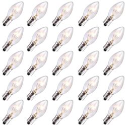 Abeja 25 Pack C7 Christmas Replacement Clear Bulbs C7/E12 Incandescent Light Bulbs for Christmas Tree Lights Set Indoor/Outdoor Party Decor, 5w