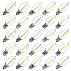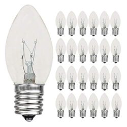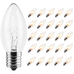 Abeja 25 Pack C9 Incandescent Replacement Bulb C9 Christmas Light Bulb for Holiday Party Christmas Decorative String Light E17 Intermediate Base 7w Clear Bulb