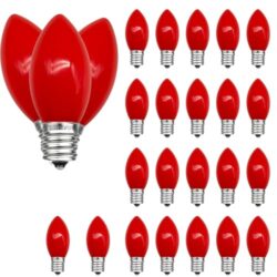 HEDCINLT 25 Pack Red C9 LED Bulbs, C9 Replacement Bulbs for Christmas Tree Lights Patio String Lights Outdoor Indoor, E17/C9 Intermediate Base, 7 Watt, Ceramic Red