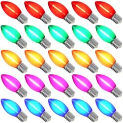 Cbebew 25 Pack C9 Christmas Light Bulbs, Ceramic Multicolor C9 LED Replacement Bulbs for Indoor Outdoor Christmas String Lights, 0.6W LED Night Light Bulb, E17 Intermediate Base -