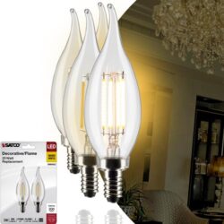 Satco LED Clear Candelabra Light Bulbs, 3 watt Type CA10 Light Bulbs Soft White 2700k,200L,E12 Candle Base,Dimmable for Dining Room,Light Fixture,Ceiling Fan,Room Chandelier (6 Packs of 2 Bulbs)