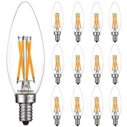 LiteHistory E12 led Bulb Dimmable 6W Equal 60 Watt 2700K AC120V Edison Bulb B10 B11 Candelabra Bulbs for Chandelier and Ceiling Fan Light Bulbs 600LM e12 Bulb 12Pack
