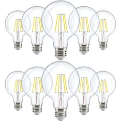 Sunco 10 Pack G25 Globe Light Bulbs LED Edison Vanity Light Bulbs, CRI90 3000K Warm White, Dimmable, 5W=60W, Clear Vintage Filament Globe, 500 Lumens, E26 Base Indoor Outdoor Clear