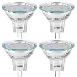 SANSUN 3W MR11 LED Landscape Light Bulbs, Low Voltage 12V 20W Halogen Replacement for Outdoor Landscape Spotlight and Indoor Track Light, GU4 Bi-Pin Base, Soft White 3000K, Non-Dimmable, (Pack of 4)