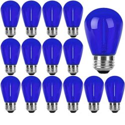 15 Pack S14 LED Bulb Blue 1W S14 Filament Bulb Shatterproof Blue Colored Plastic Outdoor Indoor Filament Replacement Bulbs E26 Base Decorative LED String Light Bulbs for Wedding Party