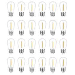 Visther 24-Pack String Light Bulbs, S14 Outdoor Waterproof Replacement Bulb, E26 Base Bulbs, 1W 120V, 2700K Warm White