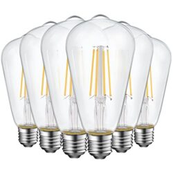 Energetic ST19 Vintage LED Edison Bulbs, 60 Watt Equivalent, ST64 LED Filament Bulbs, CRI 95+, Daylight 5000K, Non-Dimmable, E26 Standard Base, UL Listed, 6 Pack -