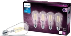 Philips LED Vintage Clear Spiral ST19 Dimmable LED Light Bulbs – E26 Bulb – Flicker-Free Light Bulb with EyeComfort Technology – Daylight 5000K Lightbulb – 800 Lumen – 4 Pack