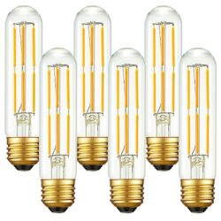 Arberlic 5 Inch T10 LED Bulb,6W Tubular Light Bulb Equivalent E26 led Bulb 60 watt dimmable,Warm White 2700K,600lm,CRI85+,AC120V,Edison Style,Clear Glass,Flicker Free,Pack of 6 -