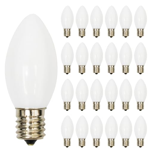 • GOOTHY 25 Pack C9 White Replacement Light Bulbs for Christmas Outdoor Patio String Lights, 7 Watt Night Light Bulbs, E17/C9 Intermediate Base Incandescent Chandelier Bulbs- Ceramic White
