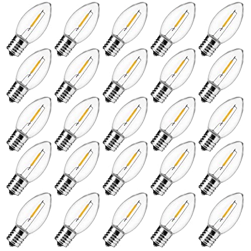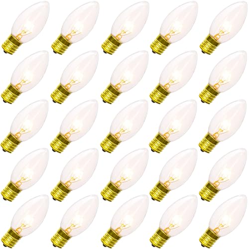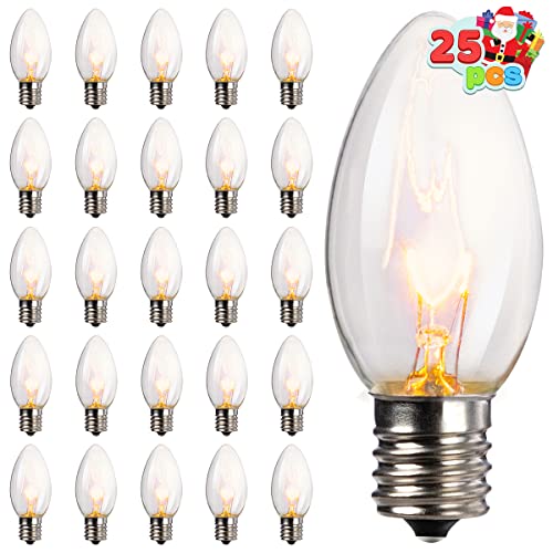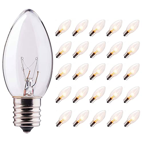 • SUNSGNE 25 Pack C9 Clear Replacement Bulbs, C9 Christmas Light Bulbs Clear Incandescent Bulbs for Christmas Vintage String Light, E17 Intermediate Base, 7 Watt, Clear