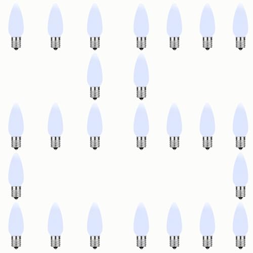 • AIDDOMM 25 Pack C9 LED Replacement Lights Bulbs Christmas, Cool White LED Christmas Lights Bulbs Replacement, E17 Replacement Christmas Lights Bulbs Outdoor, Dimmable Smooth Bulbs, Holiday Decoration