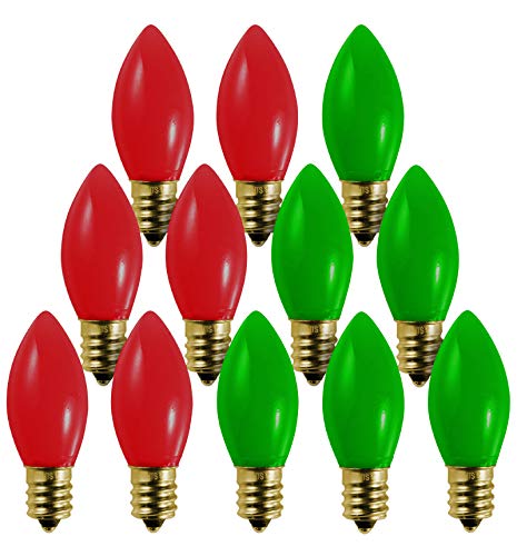 • 12 Pack C9 Red Light Bulb Green Light Bulb Ceramic Incandescent 7 Watt E17 Intermediate Base Replacement C9 String Lights Bulbs Colored Light Bulb Green Red Bulb Holiday Decorations Christmas Bulb
