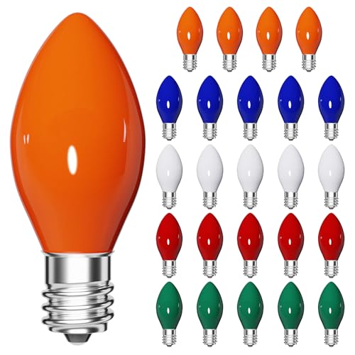 • Couah Christmas Light Bulbs C7 Multi-Color Replacement Bulbs(25 Pack) C7 Ceramic Outdoor String Light Replacement Bulbs, C7/E12 Candelabra Base, 5 Watt