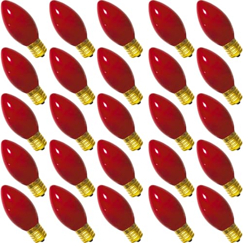 25 Pack C9 Red Christmas Light Bulbs, C9 Outdoor Christmas Replacement Bulbs with C9/E17 Intermediate Base, 7 Watt Night Lights, C9 Incandescent Red Light Bulbs for Christmas Outdoor String Lights -
