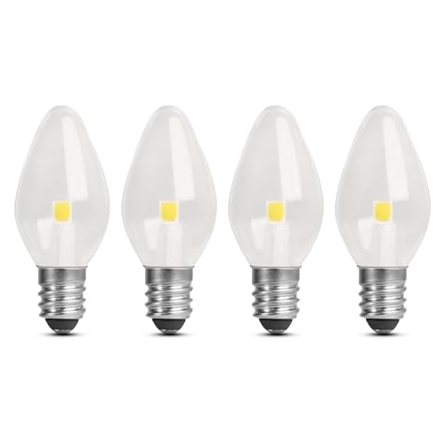 • Feit Electric BP7C7/850/LED/4 0.6W 7W Equivalent 30 Lumen Candelabra Base LED C7 Night Light Bulb, 2.1″ H x 0.9″ D, 5000K (Daylight), 4 Piece
