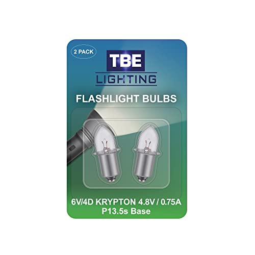 • TBE LIGHTING 6 Volt / 4D 4.8 Volt, 0.75A Bayonet Base P13.5 Krypton Flashlight Bulbs, Pack of 2 Energy efficient Flashlight Krypton Bulbs to fit a Standard 4D Torches