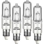 4 Pack JDE11 Bulb,120V 100W Halogen Candelabra Bulbs,T4 Mini Base JD E11 Bulb ,Dimmable 2700K Warm White(Replacement E11 LED bulb),for Chandeliers,Candelabra,Ceiling Fan, Table Lamps, Cabinet Lighting –