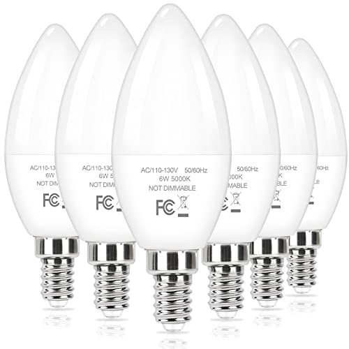 • Odnora E12 Candelabra LED Light Bulbs 60W Equivalent, 5000K 6W 450 Lumens Chandelier Light Bulbs, Daylight White LED Ceiling Fan Light Bulbs, B11 Candle Light Bulbs Small Base, Non-dimmable 6 Packs