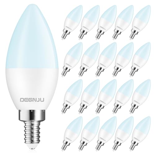 • DEGNJU 20 Pack LED Candelabra Bulbs 60 Watt Equivalent, E12 LED Bulb Daylight 5000K, Type b Light Bulb, LED Chandelier Bulbs 5.5W, Candelabra Base Bulbs 120V, B11 Candle Light Bulb, Non-Dimmable