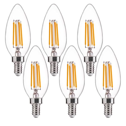 • FLSNT 60W Equivalent LED Chandelier Light Bulbs, Dimmable, E12 Base, Clear B11 LED Filament Candelabra Bulbs, 2700K Soft White, 6 Pack