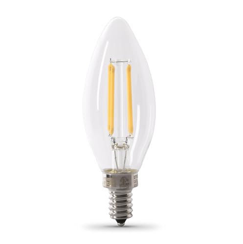 • Feit Electric 60W Equivalent Candelabra LED Light Bulb, Dimmable, E12 Base, 2700K Soft White, B10 Filament Torpedo Tip Decorative Lighting Bulbs, 13-Year Lifetime, CTC60/927CA/FIL/6, 6-Pack
