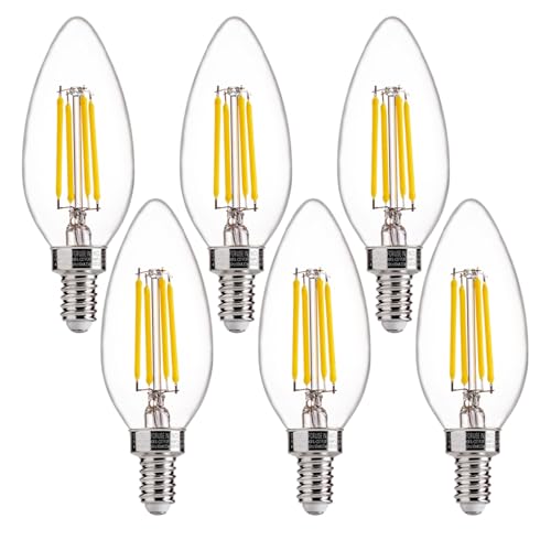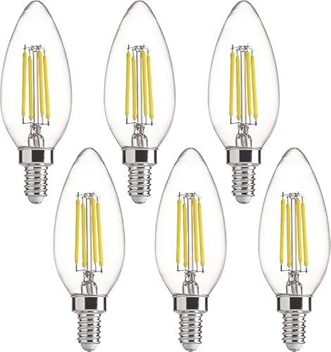 • Fglyniy 6 Pack, B10 LED Candelabra Light Bulb 40W Equivalent, 6000K Daylight White,Vintage Style E12 LED Bulb Chandelier Bulb and Ceiling Fan Bulb, are Ldeal for Home Decoration.