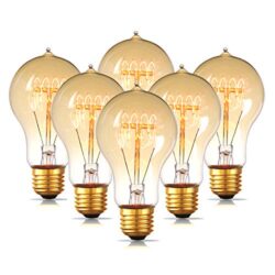 Jslinter 6-Pack Edison Light Bulb 60 Watt, Dimmable A19 Antique Vintage Old Fashioned E26 Incandescent Light Bulbs, Amber Warm White