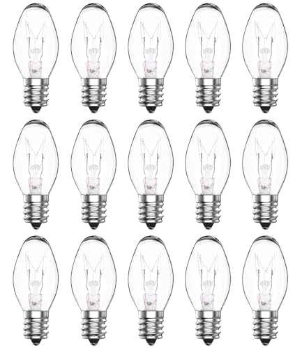 Snnalosses Wax Warmer Bulbs-15 Watt Bulbs for Scentsy Wax Warmer- C7 Replacement Bulbs for Plug in Wax Diffuser,Salt Lamp Bulbs for Himalayan Salt Lamp,Dimmable- Warm White,15 Packs –