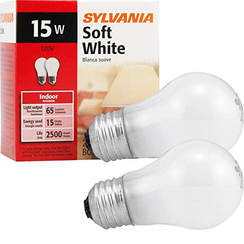 • Sylvania Soft White Incandescent A15 Bulb, Medium Base | 15 Watts/120 Volts | 2-Bulbs Per Pack (2-Bulbs Total)