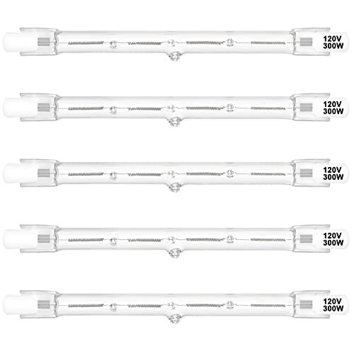 • R7S Halogen Bulbs 300W Dimmable 120V 118mm T3 J Type Floodlight Bulb with Long Lifespan, 2700K Warm White Linear Double Ended Light Bulbs for Work, Security, Landscape Lights, Floor Lamps, 5 Pack