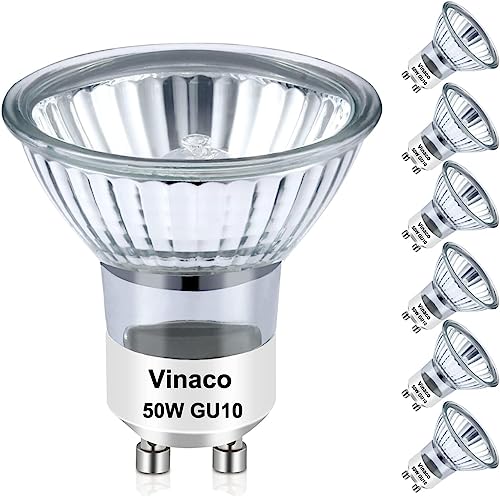 • Vinaco GU10 Bulb, 6 Pack Halogen GU10 120V 50W Candle Warmer Bulb Dimmable, MR16 GU10 C 120V 50W Bulb 2800K Warm White, GU10 Halogen Bulb for Candle Warmer Lamp Replacement, GU10 Track Lighting Bulbs