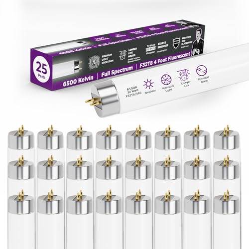 • GoodBulb 32W 48 Inch T8 Fluorescent Light Bulb, 6500K Full Spectrum Medium Bi-Pin Base, 3050 Lumens 86 CRI 24000 Life Hours, Instant/Programmed Start (Pack of 25)