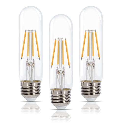 • Simba Lighting LED T10 Tubular Edison Filament Light Bulbs (3 Pack) 6W Dimmable 60W Equivalent 120V for Cabinet Display, Piano Lamps, Clear Glass Decorative, Standard Medium E26 Base, Warm White 2700K