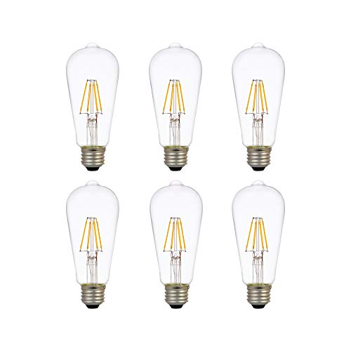 • Energetic ST19 Vintage LED Edison Bulbs, 60 Watt Equivalent, ST64 LED Filament Bulbs, CRI 95+, Daylight 5000K, Non-Dimmable, E26 Standard Base, UL Listed, 6 Pack