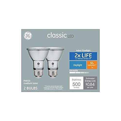 • GE Classic 2-Pack 50 W Equivalent Dimmable Daylight Par20 LED Light Fixture Light Bulbs