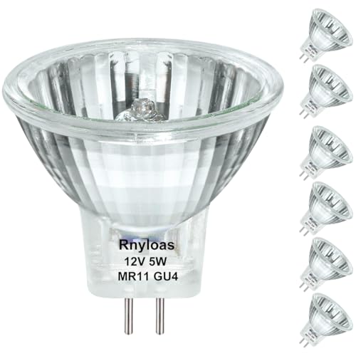 Rnyloas GU4 Halogen 5W, 6 Pack GU4 Base MR11 12V 5W, Long Lasting GU4 MR11 Dimmable with Glass Cover, MR11 Warm White 2800K Fiber Optic Light Bulb, MR11 Bulb with GU4 /GZ4 Bi Pin Base : Everything Else