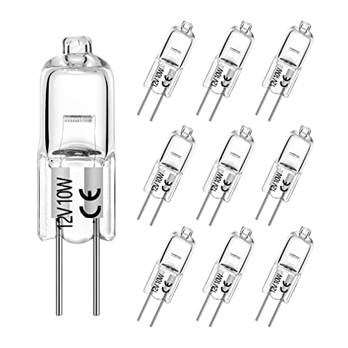 • AHEVO G4 Halogen T3 10 Watt 140lm G4 Bi-Pin Bulb AC/DC12 Volt for Under Cabinet Puck Light, Chandeliers, Track Lighting, 10W 12V Warm White 2700K (10 Pack)