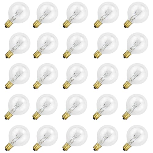 • rincentd G40 Replacement Bulbs, 120V 5 Watt Clear Globe Incandescent Light Bulbs fits E12 C7 Candelabra Base, Dimmable String Light Bulbs Replacement for Indoor Outdoor Patio Decor, (25 Pack)